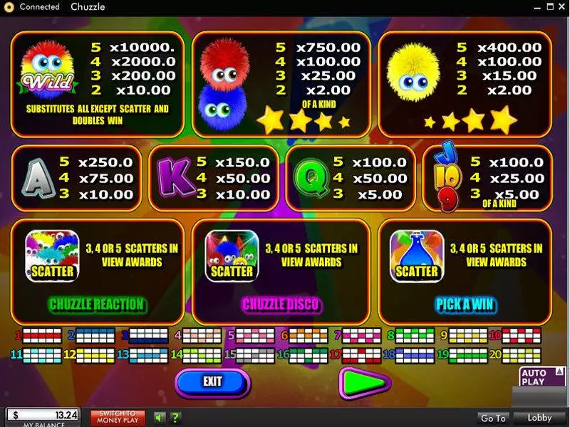 Chuzzle is a 5 Reel / 20 Line slots game, released by 888 Blueprint Gaming Gamesys in