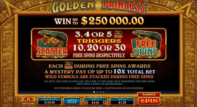 Golden Princess is a 5 Reel / 25 Line slots game, released by Microgaming in 2015
