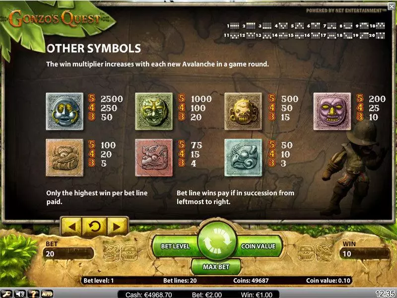 Gonzo's Quest is a 5 Reel / 20 Line slots game, released by NetEnt in