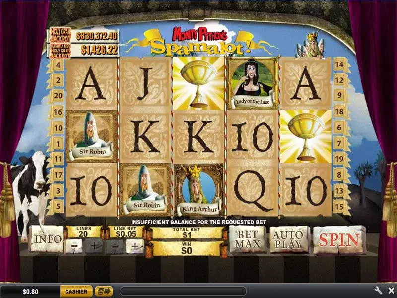 Monty Python's Spamalot is a 5 Reel / 20 Line slots game, released by PlayTech in