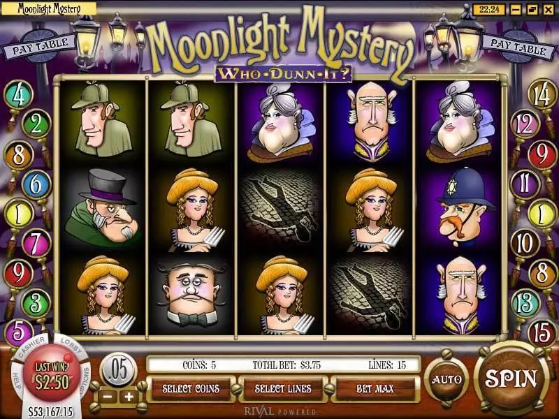 Moonlight Mystery is a 5 Reel / 15 Line slots game, released by Rival in 2009