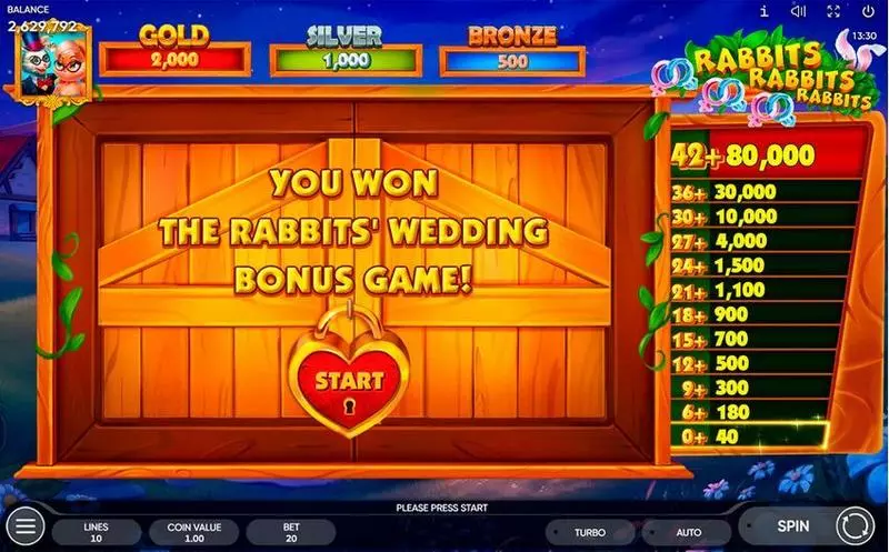 Rabbits, Rabbits, Rabbits! is a 5 Reel / 10 Line slots game, released by Endorphina in