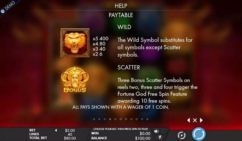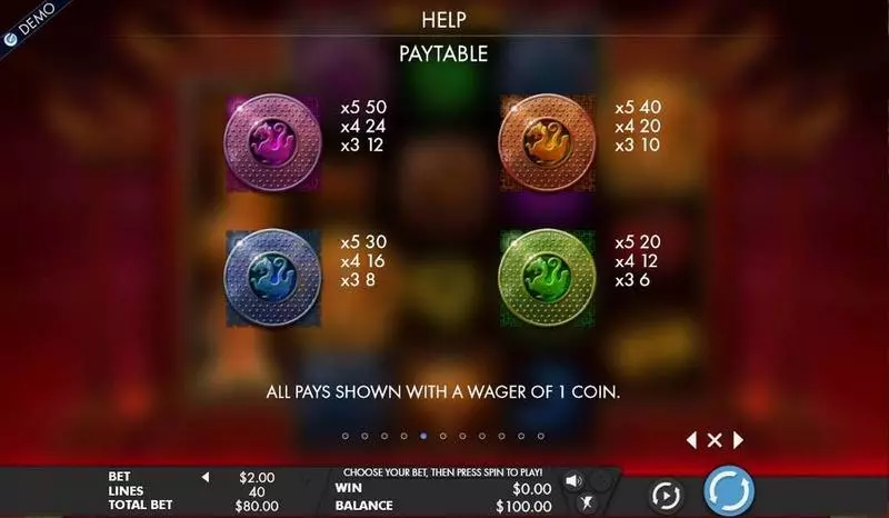 | Reels / Rows / Lines | 5 Reel 3 Row 4 Row 40 Line |