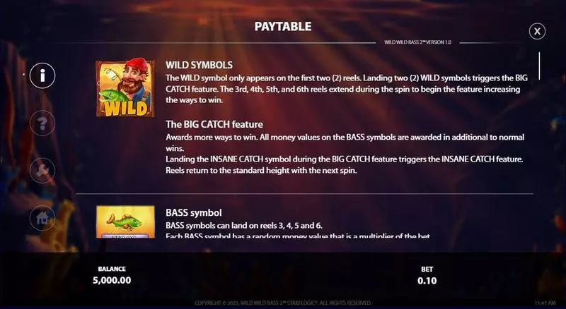 Wild Wild Bass 2 is a 5 Reel / 2304 Ways slots game, released by StakeLogic in